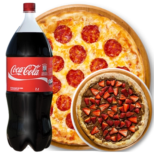 01 Pizza Grande Salgada + 01 Pizza pequena doce + Coca Cola 2 LTS.